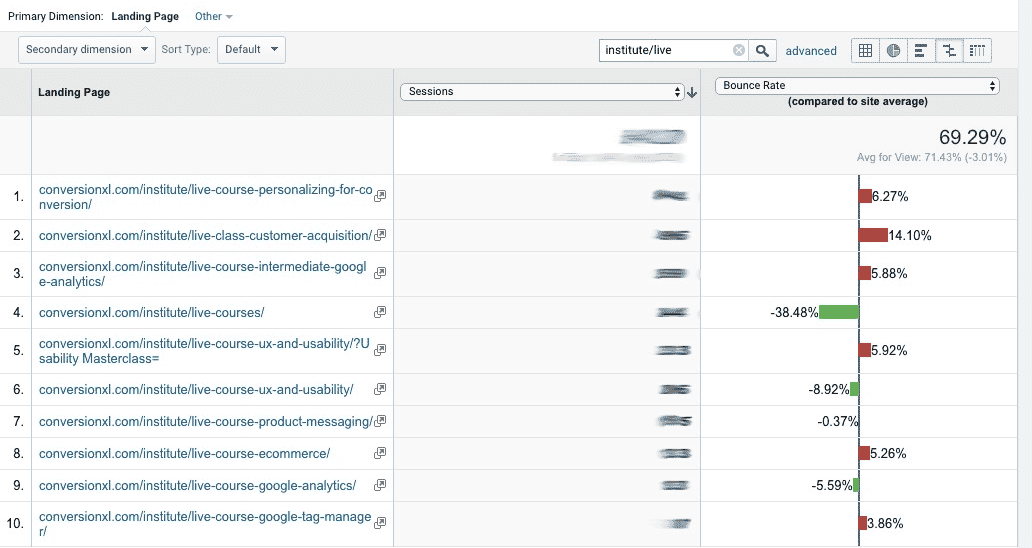 V tomto prípade sa pozeráme jednoducho na stránky predaja kurzov (live courses), čo nám poskytuje oveľa účelnejší spôsob analýzy výkonnosti stránky: