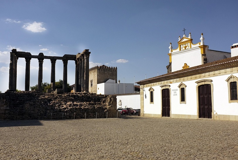 Od roku 1986 je v UNESCO aj Évora. Mestečko na juhu krajiny je posiate pamiatkami z rôznych historických období. Z čias antiky sa tu zachovali zvyšky rímskych kúpeľov a chrámu s mohutnými korintskými stĺpmi. Z technických stavieb vzbudzuje úžas akvadukt. V lokalite nechýbajú sakrálne veľdiela, medzi ktorými vyniká miestna katedrála. Z novšej éry sú zachované biele domčeky ozdobené keramickými štvorcovými obkladačkami známymi ako azulejos, ktoré sa v niekdajšom kráľovskom meste budovali v priebehu 16.–18. storočia.