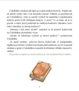 Kniha pre deti, ktorú autorka venovala deťom, ktoré radi maškrtia. Kniha chce byť aj o maškrtení, ale najmä zdravých dobrôt. Ich výroba a ochutnávanie je vsadené do príbehov, v ktorých deti pochopia, prečo nie je vhodné jesť veľa sladkostí, čím môžeme nahradiť cukor a tiež ako veľmi je pre nás dôležitá ochrana prírody a životného prostredia. Všetky tieto témy sa autorka snažila priblížiť deťom vtipnými a milými príbehmi. Čokoládka a kakaovník sa snažili cukor nahrádzať ovocím a tak vyrábať zdravé sladkosti. Motivačné aj pre deti, však?