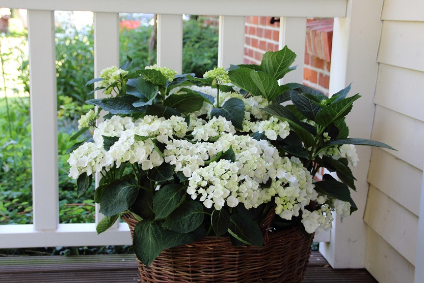 Pôvodné hortenzie s prízemným popínavým vzrastom nie sú vhodné na balkóny. Nové vyšľachtené odrody sú o niečo vyššie, vzpriamenejšie a ich rast je trochu pomalší. S výškou do 50 – 70 centimetrov sa dajú pestovať aj v kvetináčoch. Po vyšľachtení si zachovali kompaktné súkvetia guľovitého tvaru. Niektoré odrody počas roka menia sfarbenie. Vyhľadávané sú najmä druhy s ružovými a svetlomodrými kvetmi. Hortenzii vyhovujú vyššie teploty a dostatočne presvetlené miesto. Pestované v kvetináčoch sa pri zazimovaní ľahko premiestňujú do interiéru, kde prečkajú do ďalšej jari.
