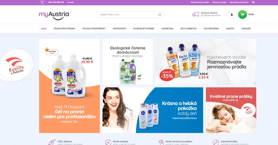 Z pohodlia domova si môžete dopriať aj nákup kvalitnej drogérie a kozmetiky vyrobenej pre rakúsky a nemecký trh v drogérii myAustria. Namiesto porovnávania kvality a cien rôznych produktov si môžete dopriať originálnu kvalitu, ktorú si zaslúžite.