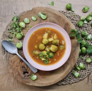 Na prípravu skvelej kelovej polievky potrebujeme: 400g ružičkový kel, 100g mäsová slaninka, 1l vývar alebo voda, 3 ks zemiaky, 50 ml pretlak, soľ, korenie