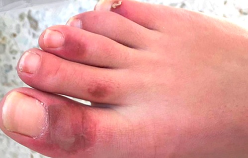 Príznak známy ako covidové prsty sa môže u ľudí objaviť až 2-3 mesiace po prekonaní infekcie covid. Prsty na nohách dostanú zvyčajne červenkastú/fialovú farbu a nápadne tak pripomínajú stav ako pri omrzlinách. Prsty na nohách môžu zároveň opuchnúť, svrbieť, bolieť alebo sa na koži môžu objaviť malé hrbolčeky či pľuzgiere naplnené hnisom.