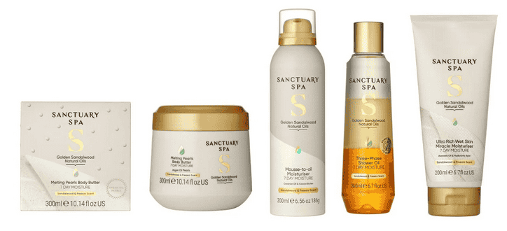Pre milovníkov vôní je tu nová kolekcia Golden Sandalwood, ktorá predstavuje biele svieže hrejivé tóny čierneho korenia, frézie a santalového dreva, ktoré rozmaznávajú zmysly, zatiaľ čo prírodné oleje vyživujú a zanechávajú pokožku zamatovo hebkú.