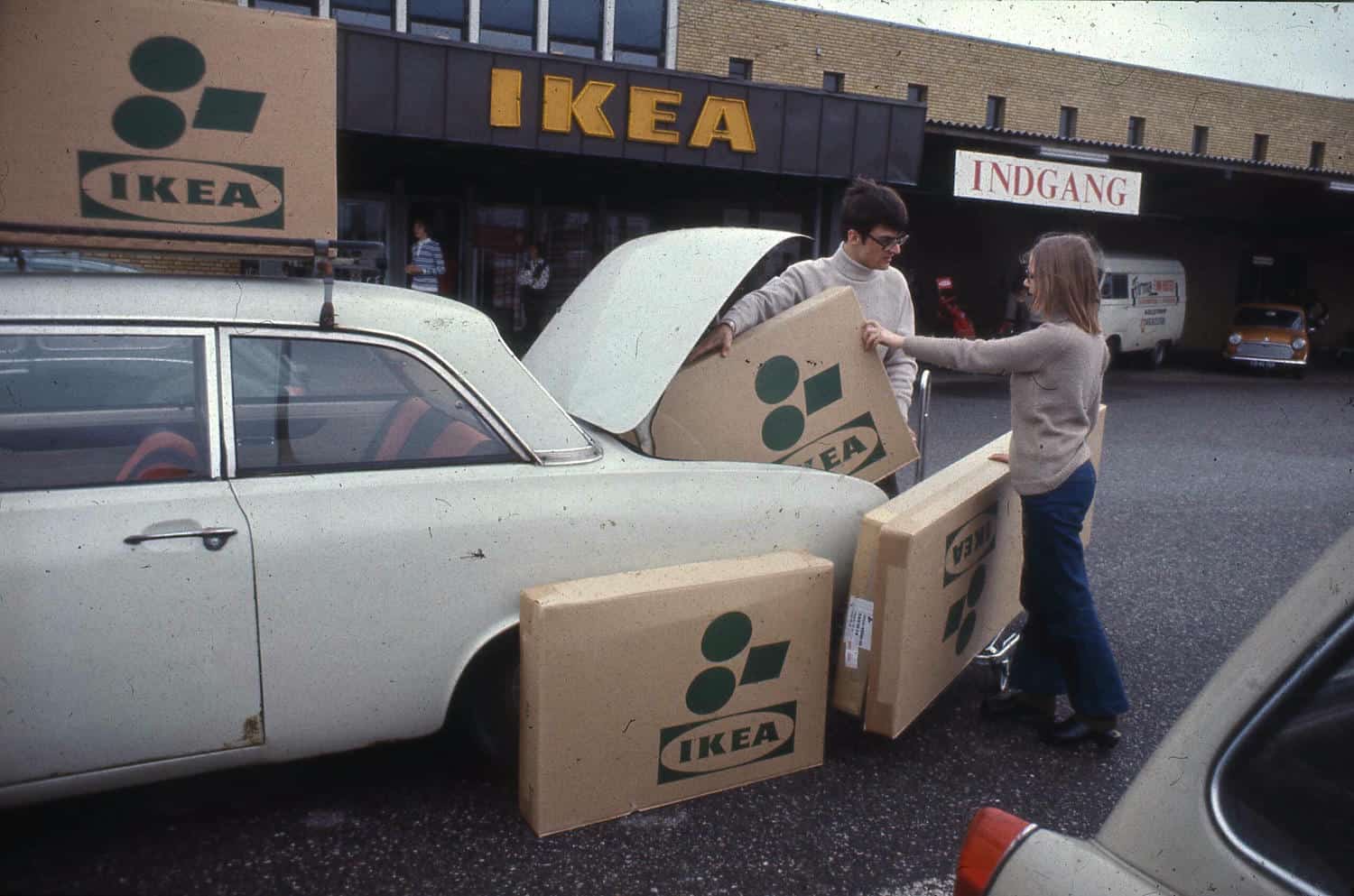 - 1956: Ingvar a dizajnér Gillis Lundgren vyriešia problém poškodzovania tovaru pri preprave tým, že zo stola LÖVET odoberú nohy. Zrodí sa revolučný koncept samoskladania a plochých balení. Ich riešenie šetrí priestor a náklady nielen v 50. rokoch, ale aj v súčasnosti.