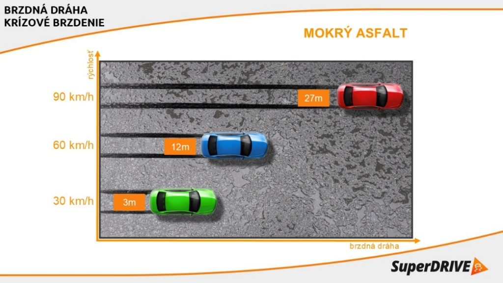 Pri daždi je nutné si uvedomiť, že naša brzdná dráha je výrazne dlhšia. Navyše na jeseň je asfalt na cestách často vlhký, mokrý či s nečistotami na povrchu, čo zhoršuje aj priľnavosť pneumatík na cestu a brzdná dráha sa tak predlžuje. A to je práve riziko, na ktoré vodiči po lete často zabúdajú.
