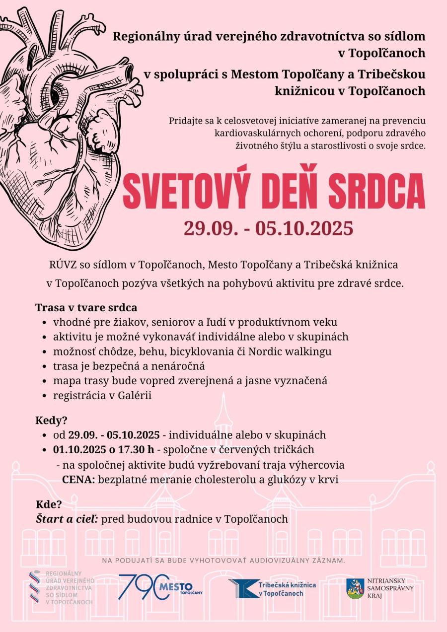 Aj to jeden z dôvodov, prečo si každý rok 29. septembra celý svet pripomína Svetový deň srdca. Táto iniciatíva upozorňuje na význam zdravia srdca, prevenciu kardiovaskulárnych ochorení a potrebu aktívnej starostlivosti o toto životne dôležité orgánové centrum.