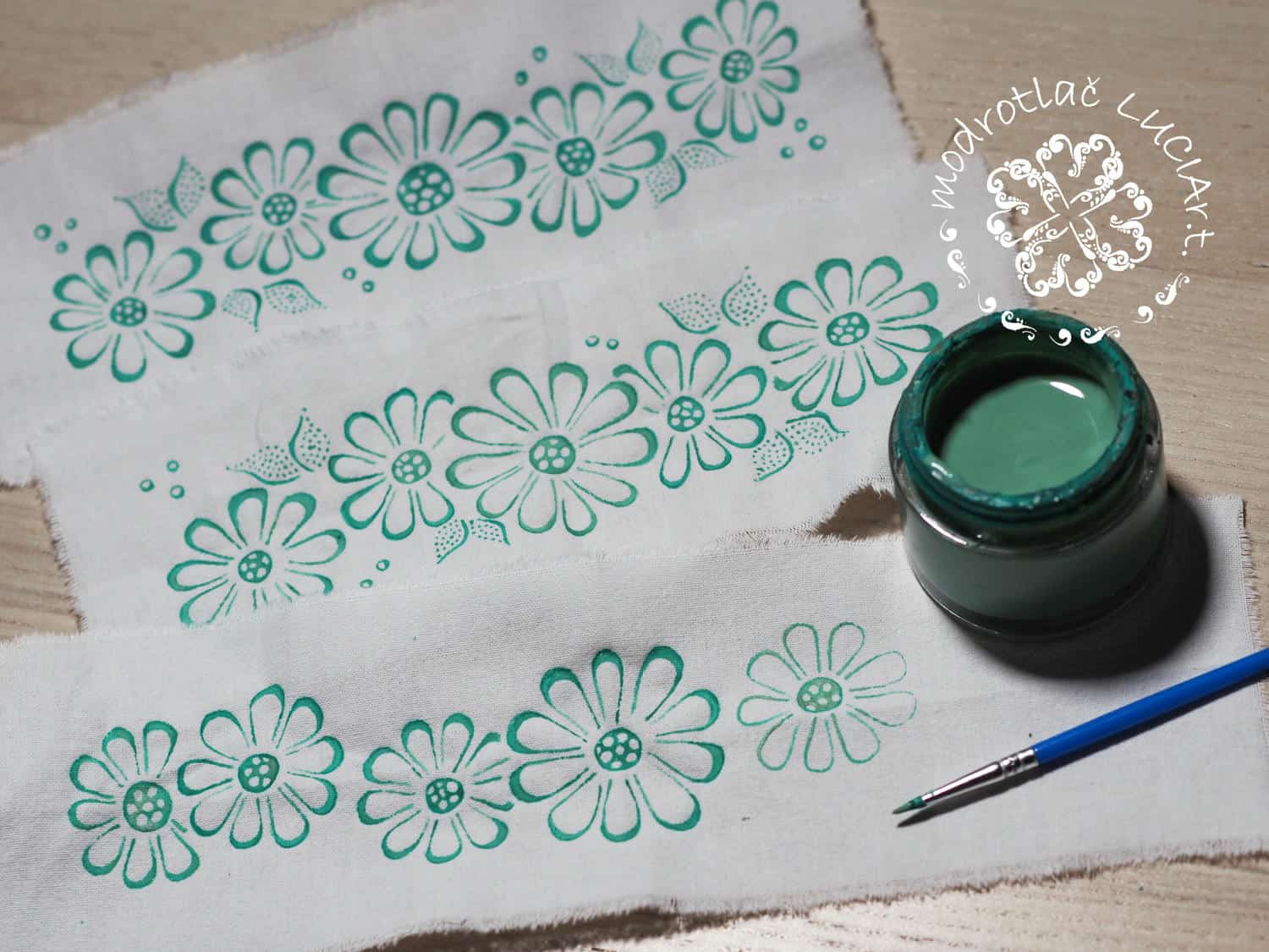 Tradične sa pap na látku nanášal pečiatkami, ale nebolo to pravidlom. Historické pramene hovoria aj o iných možnostiach vzorovania. Keďže výtvarný svet mi bol vždy blízky, neobávala som sa pustiť do modrotlače svojským spôsobom. Čiže neotláčať vzory pečiatkou opakovane tie isté, ale tvoriť a maľovať svoje vlastné. Bez šablóny skladať kvietky, bodky, čiarky, vlnky, lístočky či srdiečka do rôznych vzorov a tvarov. Rezervu nanášam na látku tenkým štetcom. Tento spôsob dáva väčšiu voľnosť v tvorbe a rozvíja kreativitu. Výsledkom sú originálne, jedinečné a neopakujúce sa vzory. Samozrejme ovládam aj tlač pečiatkami.