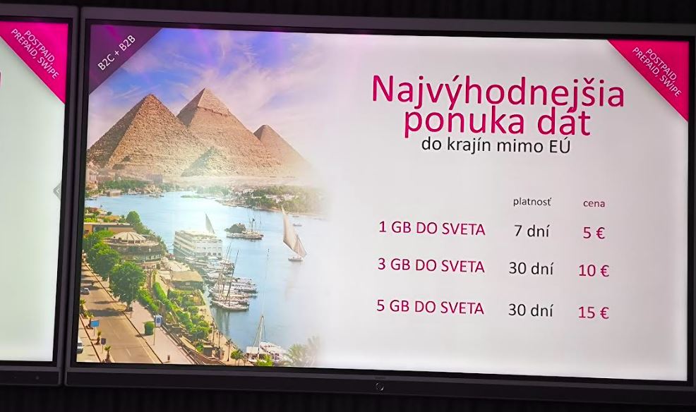 Minulý rok sme priniesli dátové roamingové balíčky do vyše 40 krajín, kde sme opäť trošičku priniesli lepšie ceny. Pokračujeme však ďalej a tento rok prinášame naozaj top ponuku pre našich slovenských zákazníkov, ktorí cestujú do exotiky, do krajín mimo Európskej únie. Navýšili sme objem dát, začíname na 1 GB, 3 GB, 5 GB v cenách 5 EUR, 10 EUR, 15 EUR. Prvý balíček platí na sedem dní, ostatné sú 30-dňové.