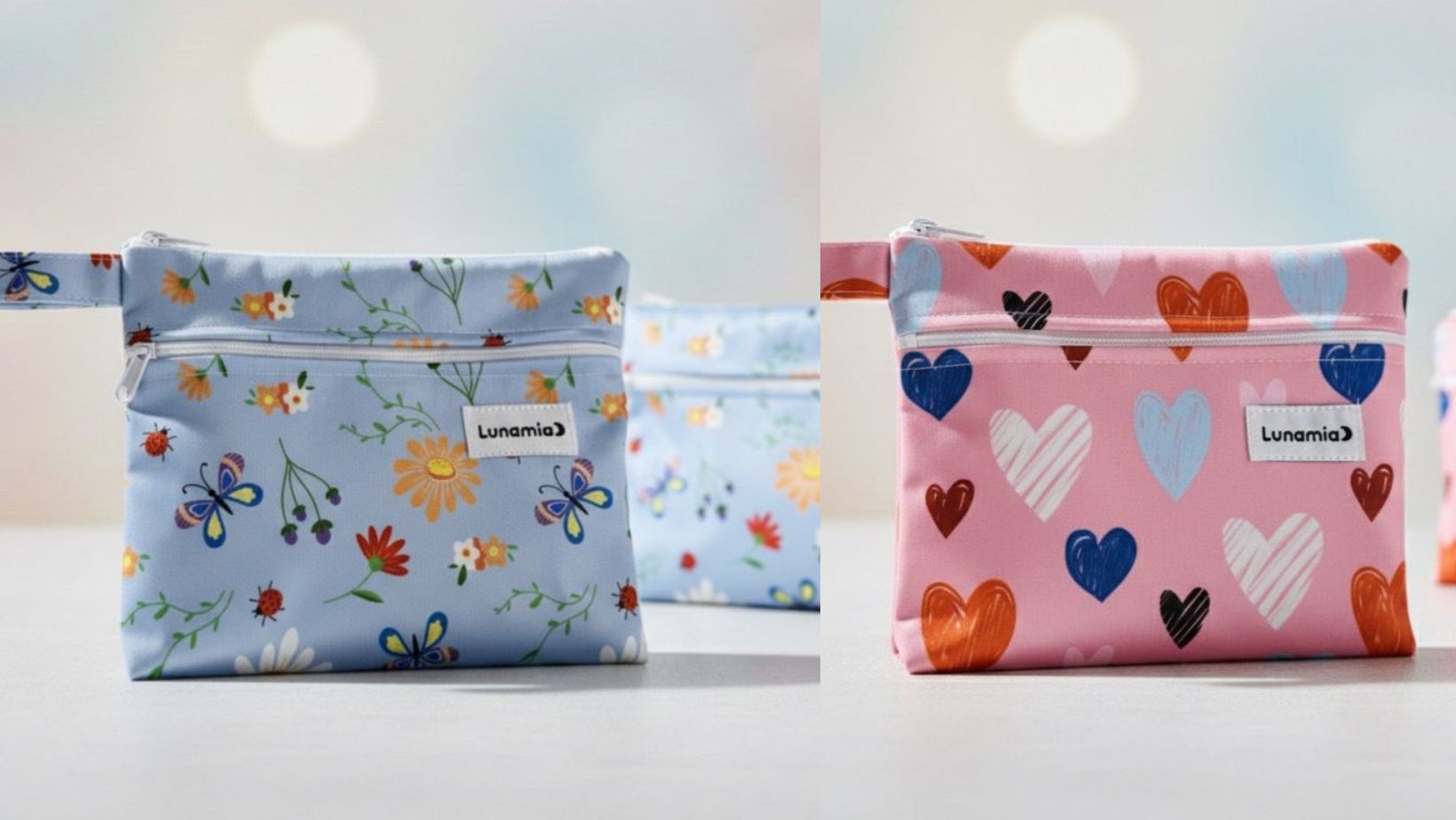 K nohavičkám si môžete dokúpiť aj nepremokavú taštičku v niekoľkých krásnych dizajnoch. Zatiaľ som ju ešte nemala možnosť naplno využiť, no pri cestovaní alebo dlhších dňoch mimo domu môže byť veľmi praktická.