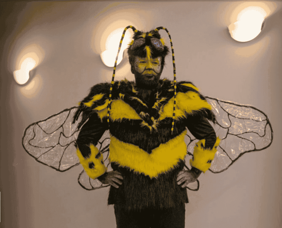 Na jeho premene na člena hmyzej komunity pracovali šikovné ruky umeleckej maskérky Adriany Loj a kostymérky Laury Bezuchovej, ktorá sa prezentuje pod značkou L-Revolution. Prvá z dám vyrobila originálnu masku, čelenku a make-up. Druhá zas ušila kostým, vyrobila krídla a zadoček so žihadlom. Pri samotnej výrobe použili netradičné materiály, ako napríklad alobal, servítky, či izolačnú pásku.