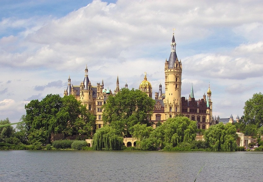 Ďalší z romantických zámkov sa nachádza v severonemeckom meste Schwerin. Vzhľadom kombinujúcim prvky neogotiky a novorenesancie v mnohom pripomína Neuschwanstein. Na rozdiel od neho stojí priamo v meste na rovine. Obklopuje ho rozsiahly mestský park s jazierkami, sochami a alejami. V minulosti slúžil ako škola aj lokálny parlament. Časť stavby je v súčasnosti vyhradená na múzejné účely.