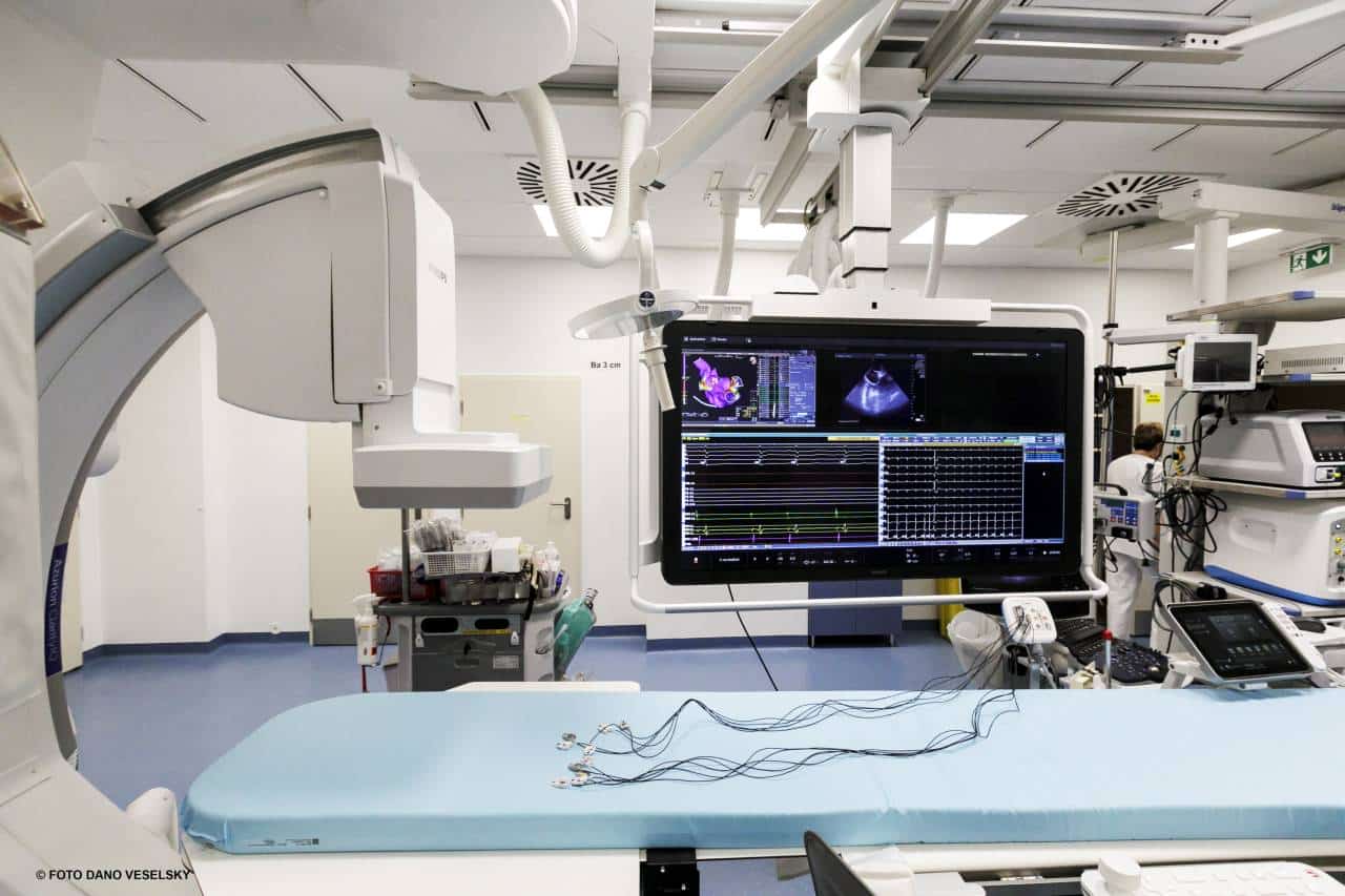 Operačná časť pozostáva z 3 veľkoryso koncipovaných intervenčných sál pre diagnostiku a liečbu srdcových arytmií. Sály sú vybavené nielen najmodernejšou RTG technikou, ale aj novými technológiami pre lokalizáciu a následné odstránenie patologických ložísk v srdcovom svale, ktoré arytmie vyvolávajú. Kombinácia týchto technológií umožní minimalizovať dávky potrebného RTG žiarenia a chrániť tým pacientov a medicínsky personál. Operačné sály sú koncipované tak, aby boli pripravené aj na využívanie nových robotických technológií.