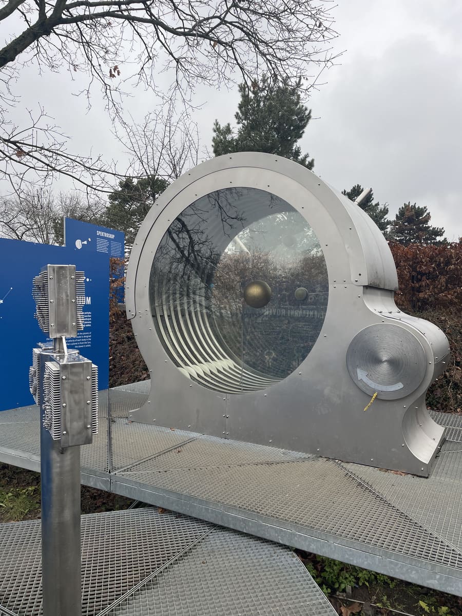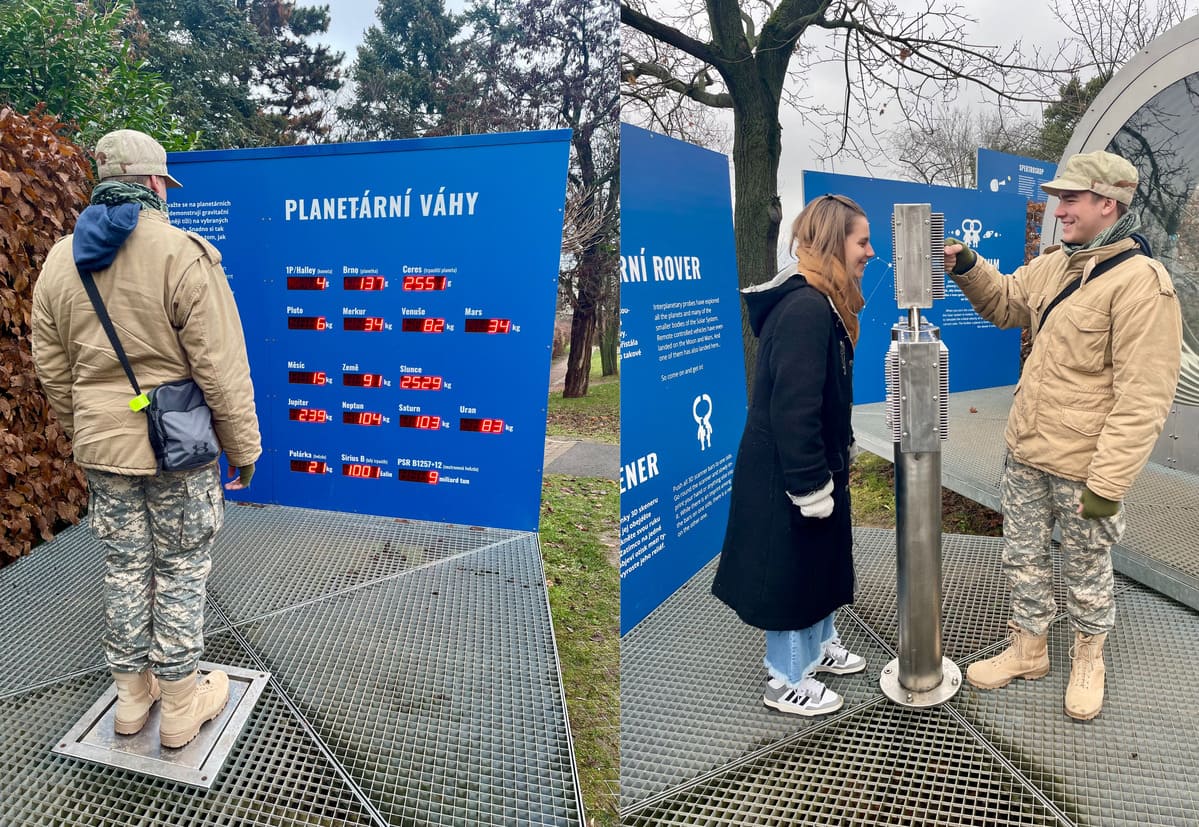 Pred budovou nájdete veselú vedeckú cestu, ktorá hravou formou vysvetľuje fyzikálne a astronomické princípy. Užijete si kaleidoskop, pixelovú stenu, spektroskop, gravitačný merač a mnoho ďalšieho. Veľa sme sa dozvedeli a veľa sme sa aj nasmiali. Páčiť sa bude určite aj vám.