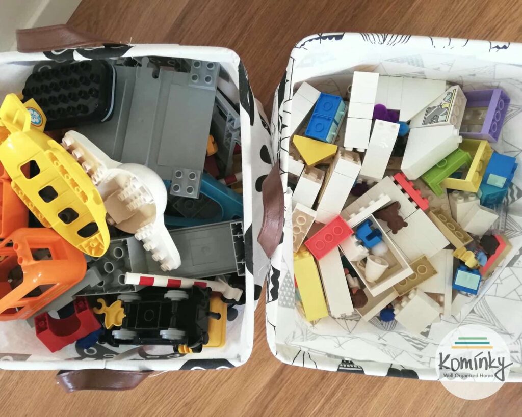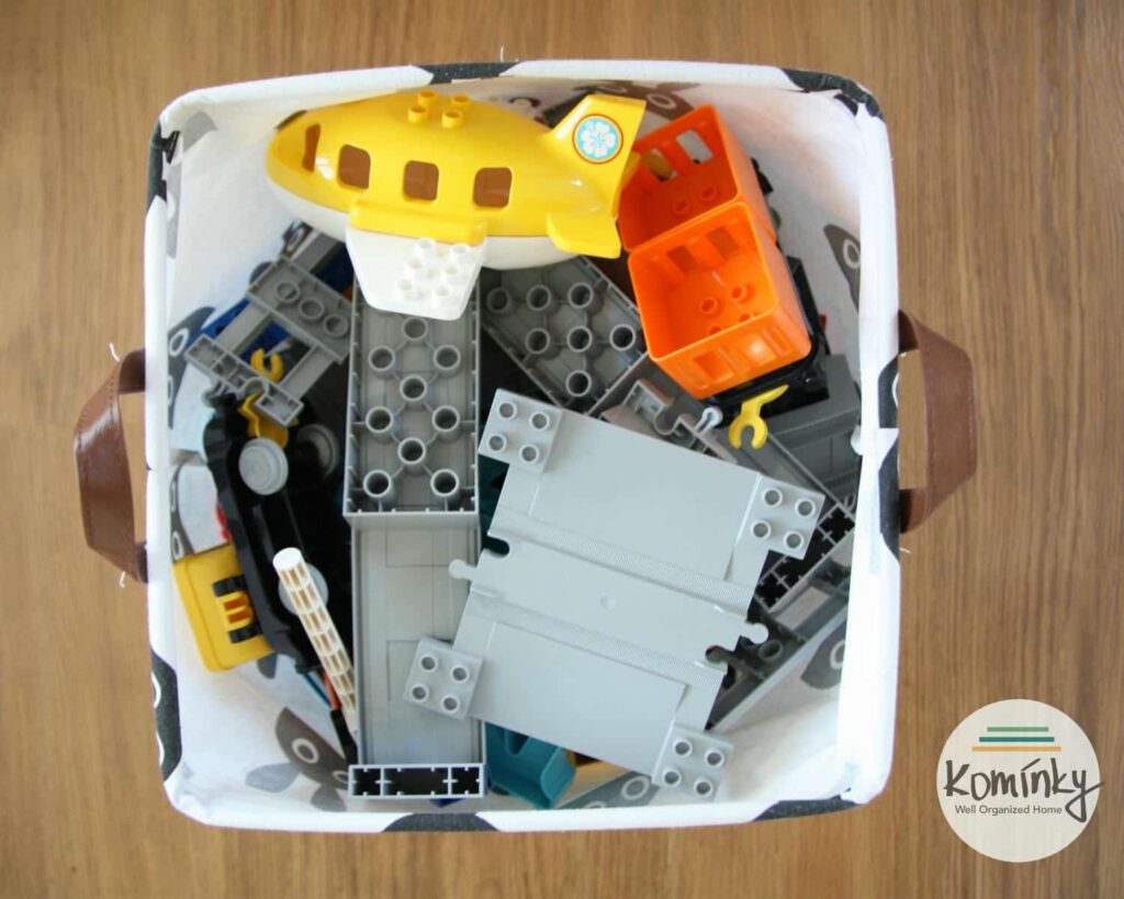 Pokiaľ LEGA/ DUPLA ešte nie je priveľa a nie je vytriedené, vhodná je stredne veľká, ľahká plastová alebo látková škatuľa alebo látkový kôš. Výhodou je jednoduchá manipulácia a upratovanie bez triedenia.