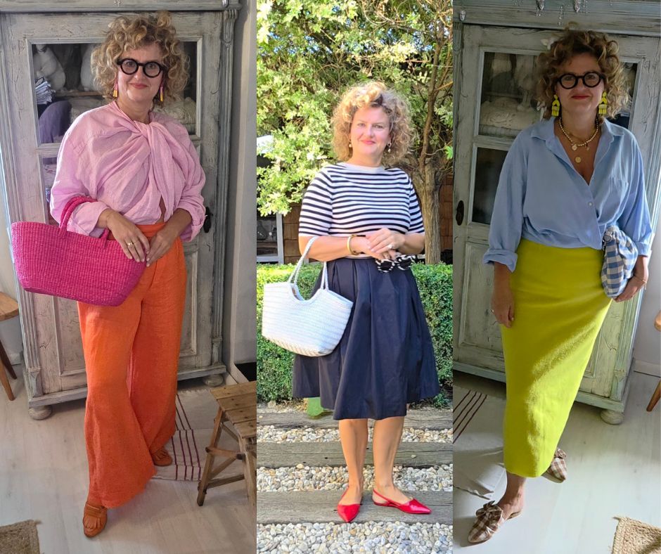 Ja takmer nenosím rifle, mám svoju kapsulu Son de Flor ľanové „kulotky” a farby, to je moja značka. Milujem kombinovať tri a viac farieb. A každá z nás by mala prísť na to, čo je tá jej kapsula. Tam by som začala.