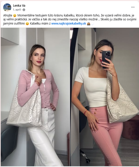 Radosť z testovania krásnych kabeliek, ako aj spätnú väzbu sme zapracovali do článku 10 žien, 10 kabeliek z najkrajsiekabelky.sk – každá iná, každá výnimočná.