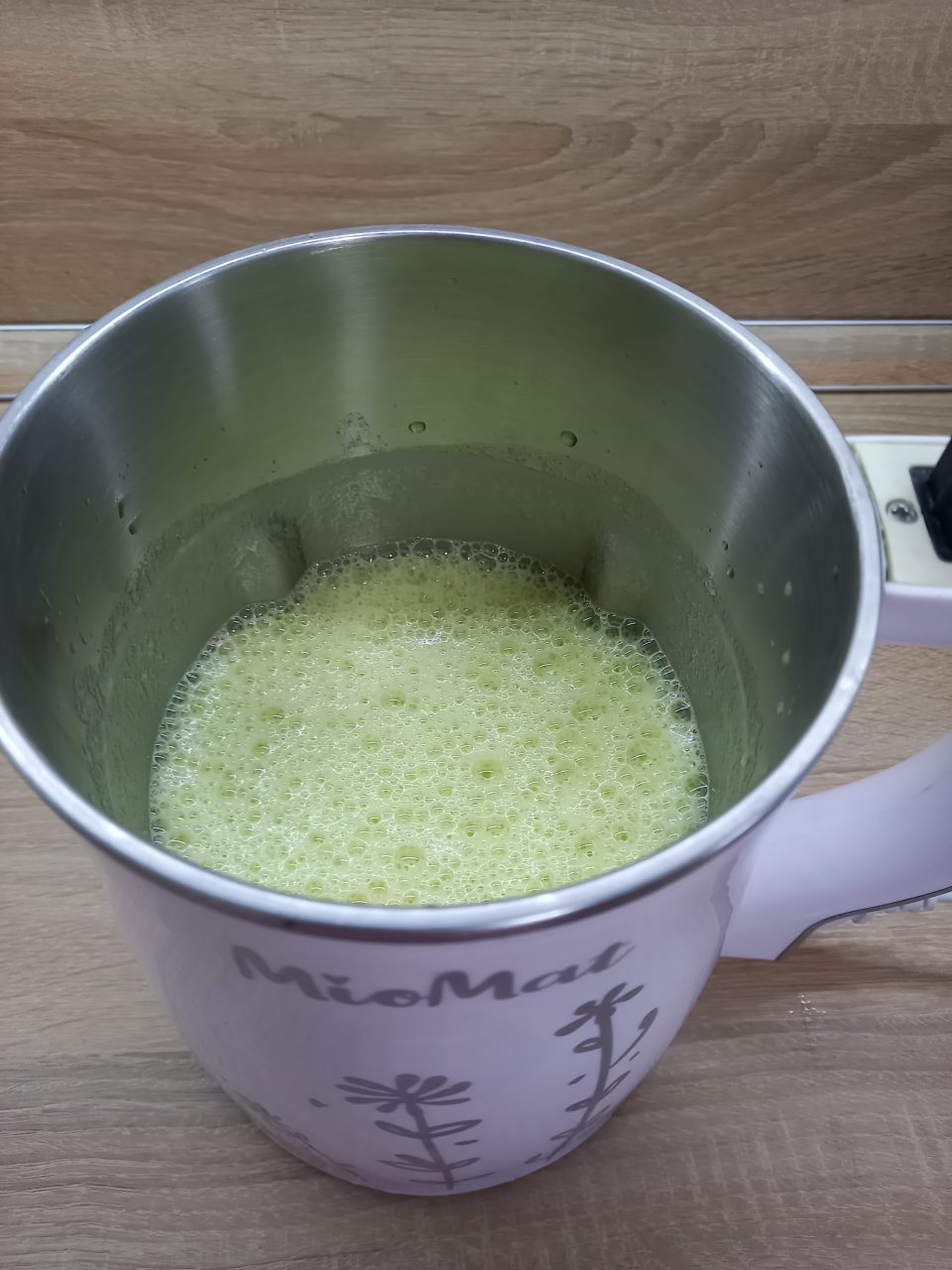 Všetko ovocie sme očistili, jablká sme zbavili šupiek aj jadierok. Nakrájané na menšie kúsky sme ich vložili do mixéra. Tentokrát sme sa rozhodli vyskúšať MioMat, v ktorom sa dá spraviť 1 liter nápoja. Približne dve minúty trval proces mixovania a výsledok bol veľmi príjemný. Čakalo nás napenené smoothie s jemne rozmixovaným ovocím. Priznám sa, že sme mali obavu, ako to dopadne, nakoľko máme doma aj SmoothieMaker, ktorý má na tento účel špeciálne ostré nože, ale výsledok z MioMatu bol približne rovnaký.