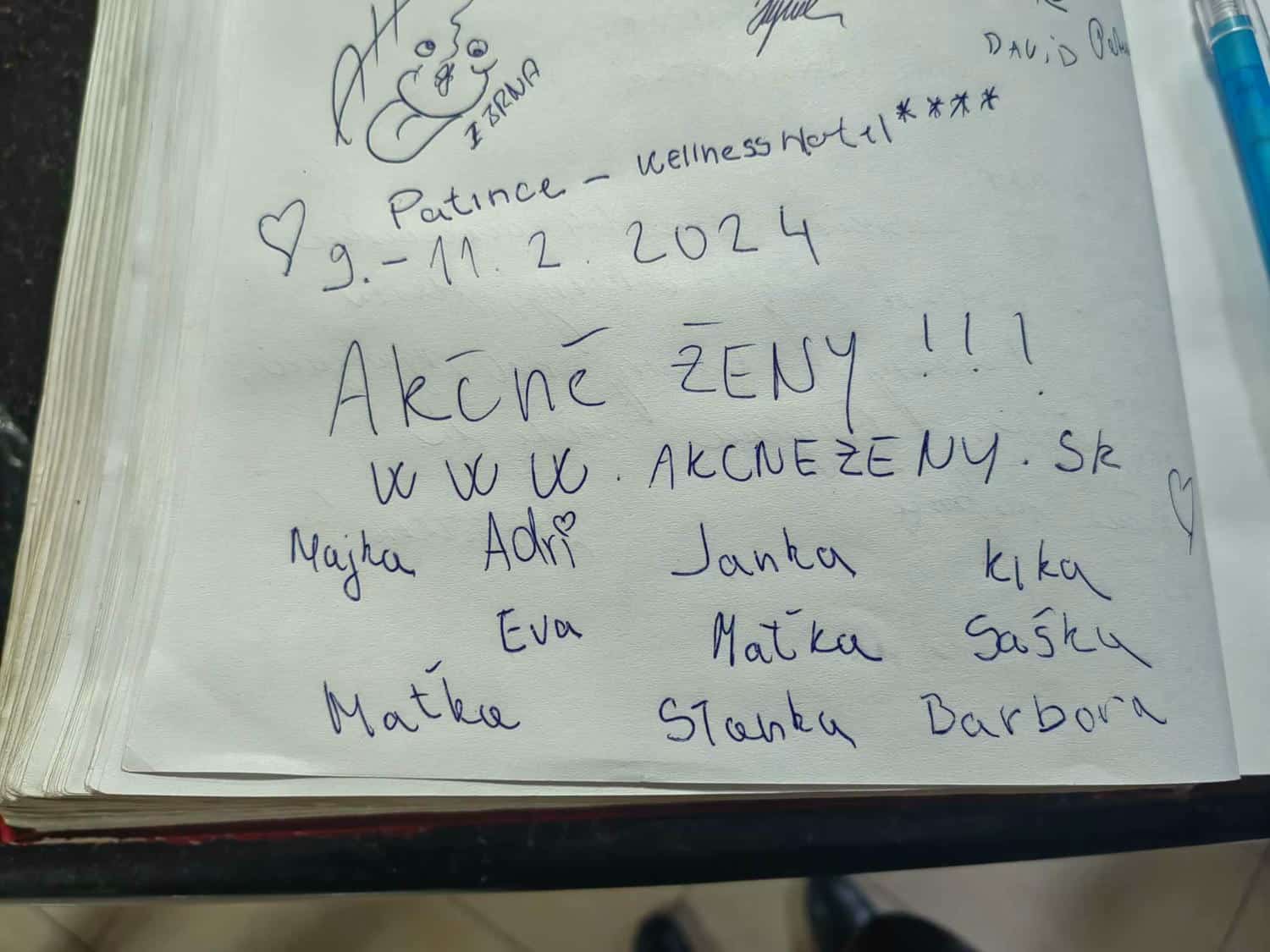 Každá sa v piatok snaží čím skôr ukončiť pracovné, či domáce povinnosti a nachystať sa tak, aby sme už poobede sa mohli stretnúť vo wellness hoteli v Patinciach. Väčšina z nás cestuje z Bratislavy, no dve akčné duše neodradí ani diaľka až z ďalekých Michaloviec. Hoci nás je len polovica z plánovaného počtu, na dobrej nálade to nikomu neuberá.