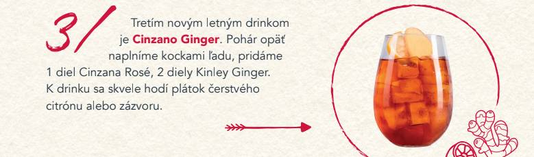 Miešaný drink Cinzano Ginger je potešením pre všetkých, ktorí preferujú sladký život, ale horkú chuť. Keď ochutnáte miešaný drink Cinzano Ginger, určite nám dáte za pravdu. Do pohára s ľadom stačí pridať 1 diel Cinzano Rosso a 2 diely Kinley Ginger Ale. K dokonalému pôžitku z kokteilu potom chýba už len plátok čerstvého citrónu alebo kúsok zázvoru. Ak ste zástancami sladšej chute aj vône, tak si určite zamilujete Cinzano Rosé. Jeho príprava je navyše jednoduchá – do pohára s ľadom pridáte 1 diel Cinzano Bianco, 2 diely Kinley Bitter Rose a navrch vaše obľúbené lesné ovocie, aby ste mali drink sladký presne tak, ako sladký chcete mať celý život! Letné horúce dni ale väčšinou vyžadujú poriadne osvieženie! A čo sa pri tom dostať do dobrej nálady? Vyskúšajte Cinzano Tonic, ktorý sa skladá z 1 dielu božsky suchého Cinzano Extra Dry a 2 dielov Kinley Tonic Water. A ak si drink budete pripravovať spoločne s letnou večerou, nezabudnite do neho pridať kus uhorky. Teraz si už stačí iba ťuknúť. Na život!