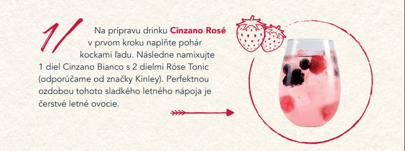 Predstavte si horúci podvečer v rozkvitnutej záhrade, kde s vaším drahým hľadáte posledný kúsok tieňa, kam slnko ešte nemôže. Chýba vám k dokonalosti ešte niečo na chuť? Cinzano Rosé je perfektný miešaný drink pre romantickú dušu, ako ste vy. Jeho príprava je navyše jednoduchá – do pohára s ľadom pridáte 1 diel Cinzano Bianco, 2 diely Kinley Bitter Rose a navrch vaše obľúbené lesné ovocie, aby ste mala drink sladký presne tak, ako sladký chcete mať celý život! CIN CIN!