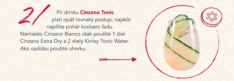 Že zelenina patrí len do šalátu? Ale kdeže! Rovnako tak, ako milujeme zdravé jedlá, tak zbožňujeme svieže miešané drinky! Cinzano Tonic si navyše zvládnete pripraviť úplne sami. Stačí v pohári s ľadom spojiť 1 diel božsky suchého Cinzano Extra Dry s 2 dielmi Kinley Tonic Water a nechať sa unášať ľahkou sviežou chuťou. A až si drink budete pripravovať spoločne s letnou večerou, pridajte do neho ešte kus uhorky a riaďte sa s nami heslom „stay fresh“!