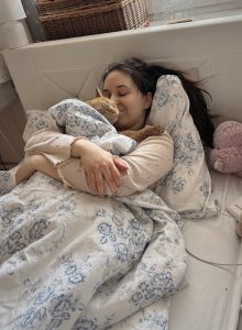 Nedávno som objavila aj somatické a relaxačné cvičenia a musím povedať, že mi naozaj prinášajú úľavu. Pri endometrióze zohráva veľmi dôležitú úlohu aj duševné zdravie, a preto sa oň snažím dbať. Obklopujem sa ľuďmi, ktorí ma prijímajú takú, aká som, podporujú ma a neočakakávajú odo mňa 110 %. K relaxácii mi pomáha aj prítomnosť mojich domácich miláčikov.